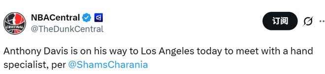 此前,名記Shams率先報(bào)道,戴維斯預(yù)計(jì)將接受左手韌帶修復(fù)手術(shù),缺席賽場數(shù)月。戴維斯對Shams的報(bào)道予以否認(rèn),並通過社交媒體進(jìn)行反駁。“大傢最好別再相信這些平臺上的謊言瞭?!贝骶S斯在社媒上寫道,隨後又在多條援引這一突發(fā)新聞的帖子下回復(fù)“謊言”二字。在今天將前往洛杉磯與手部專傢會面後,濃眉確定無需接受手術(shù)。Shams隨後也修正瞭自己的報(bào)道,不過未來六周,濃眉是肯定無法出場瞭。