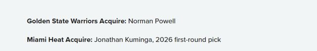 這筆首輪簽的添頭,或許足以推動(dòng)交易達(dá)成;甚至熱火可能還會(huì)更大膽一些,索要一個(gè)更晚的首輪簽——畢竟那時(shí)候的勇士,或許已步入后庫(kù)里時(shí)代,選秀順位會(huì)更高。