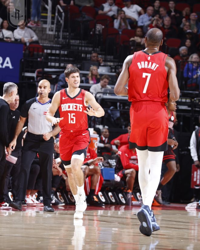 公牛隊的瓊斯上半場得到13分和7次助攻,史密斯得到12分和4個籃板;火箭隊的申京得到13分、4個籃板和5次助攻,杜蘭特得到12分和7個籃板。