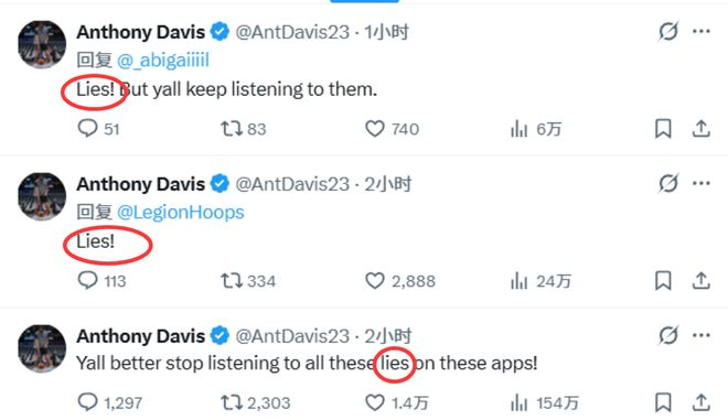 此前,名記Shams率先報道,戴維斯預計將接受左手韌帶修復手術,缺席賽場數(shù)月。戴維斯對Shams的報道予以否認,并通過社交媒體進行反駁?!按蠹易詈脛e再相信這些平臺上的謊言了?!贝骶S斯在社媒上寫道,隨后又在多條援引這一突發(fā)新聞的帖子下回復“謊言”二字。在今天將前往洛杉磯與手部專家會面后,濃眉確定無需接受手術。Shams隨后也修正了自己的報道,不過未來六周,濃眉是肯定無法出場了。