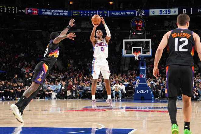76人:馬克西20分7助攻,烏布雷5記三分21分,埃奇庫(kù)姆25分7籃板,格萊姆斯12分,博納11分10籃板。