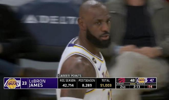 詹姆斯在對決猛龍的比賽之前,他NBA生涯常規(guī)賽與季后賽總得分,已經(jīng)達(dá)到50992分。伴隨詹姆斯如今上半場已經(jīng)得到13分,他成功解鎖NBA生涯常規(guī)賽51000分里程碑大關(guān)。