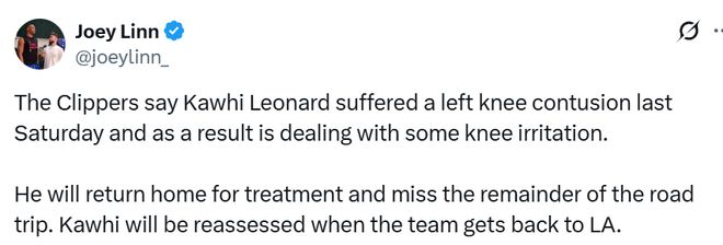 需要說明的是,此次出現(xiàn)不適的左膝,并非他此前多次接受手術(shù)治療的那一側(cè)膝蓋。萊昂納德曾因舊膝傷缺席了2024-25賽季的全部上半程比賽。