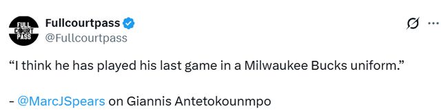 北京時(shí)間1月27日,雄鹿隊(duì)球星字母哥正處于小腿拉傷的恢復(fù)期,此前他曾預(yù)估自己可能會(huì)缺陣4至6周,目前其確切復(fù)出時(shí)間仍未可知。名記Spears在節(jié)目上表示:“我認(rèn)為他已經(jīng)打完了身披密爾沃基雄鹿隊(duì)球衣的最后一場比賽,”