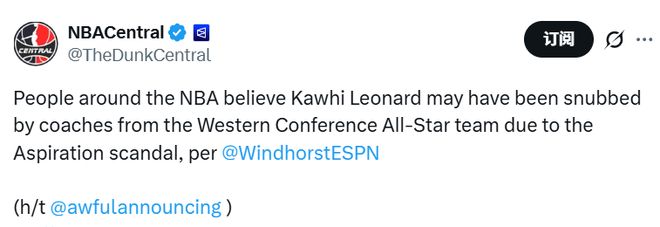 西部全明星的七個替補名額由教練們投票選出,但他們跳過了萊昂納德。根據文霍斯特的爆料,或許是受到了他與快船贊助商存在“虛假代言”爭議的影響。教練組與聯(lián)盟方面大概率不希望,這項NBA年度盛會的焦點被一個仍在調查中的事件奪走。