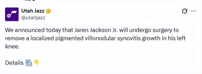 北京時間2月13日,猶他爵士隊官方宣布,小賈倫-杰克遜將接受手術(shù),移除其左膝內(nèi)一處局部色素沉著絨毛結(jié)節(jié)性滑膜炎(PVNS)增生。該增生是在交易后的體檢中通過核磁共振檢查發(fā)現(xiàn)的。