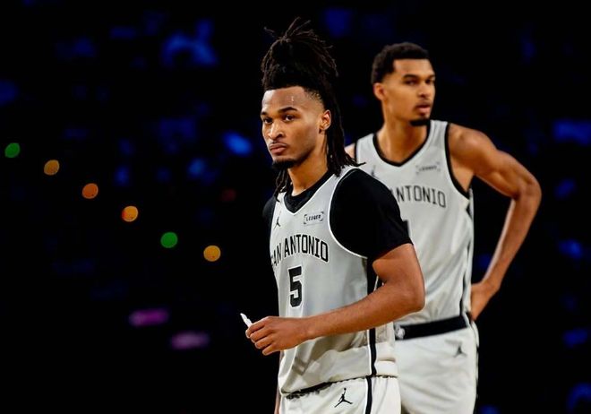 馬刺:尚帕尼、瓦塞爾、文班亞馬、??怂?、卡斯?fàn)?/p>